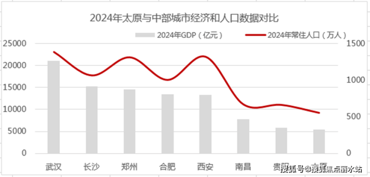 作为三线城市的太原,2024年常住人口551万,位居全国各大城市人口排名第73名; 2024年太原市GDP为5419亿元,全国百强城市第58名,人口和经济指标均低于中部主要城市。