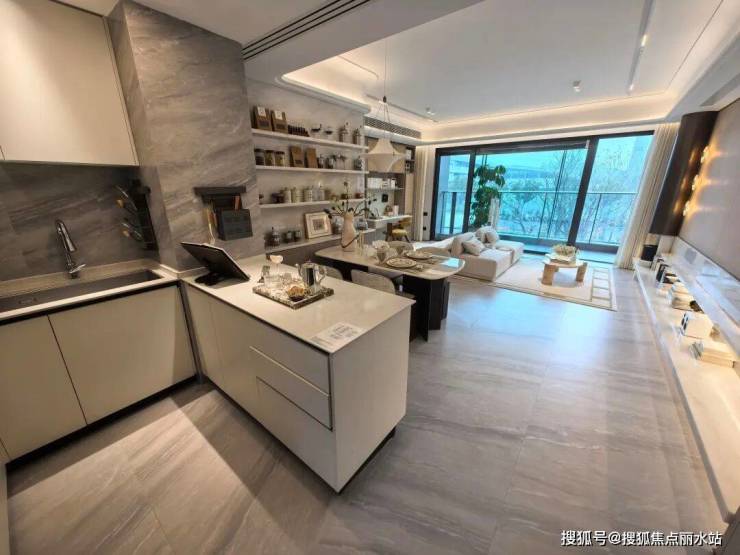 客厅大横厅设计,约5.4米的大尺度,还是双卫设计,更令人惊喜的是,客餐厅采用岩板通铺设计,说实话,这一配置是软件谷的首例,有创新性、引领性。
