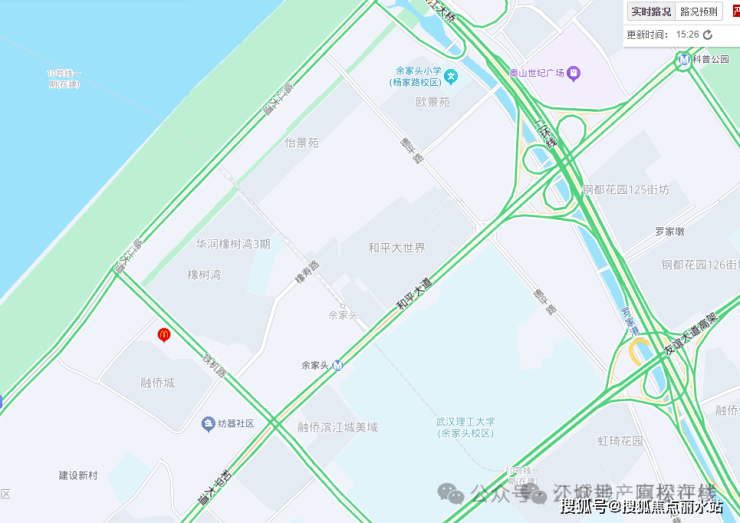自驾:项目紧临的临江大道与和平大道,都是大武昌横向主干道,不过这2条路红绿灯也较多,并非快速路。经临江大道或和平立交上二七长江大桥、长江二桥等,都比较方便。另外,项目西侧铁机路在建有二七路-铁机路过江通道,规划为双层双向6车道过江隧道,武昌段出口位于铁机路上,项目附近有无出口还不确定。