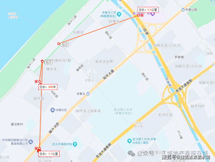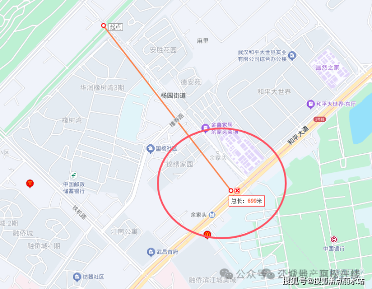 西南侧为江南实业B地块商业、铁机路、武铁余家头小区等;