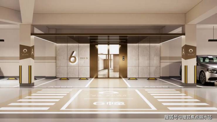 地下环氧地坪,精装入户大堂,莫兰迪色星空吊顶,归家仪式感拉满。