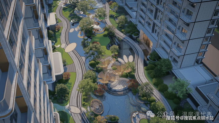 翎羽水境——层叠水域与自然绿意交织构筑诗意般的中心花园会客厅,重拾生活雅趣。