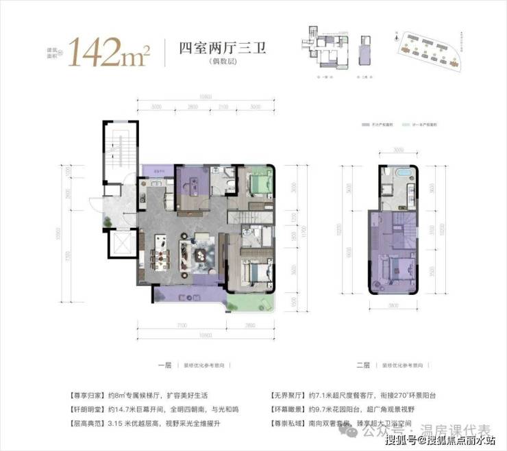 龙湾首座四代宅项目,建面约142-178㎡第四代全跃产品,户户奢享超大花园露台,把庭院生活搬至都会上空,超110%实用率,引领高定奢居新纪元。