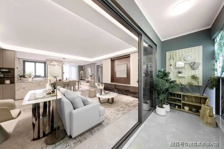 在建筑立面营造上,以高级灰铝板、大面积玻璃,共同勾勒出现代风尚美学立面, 40%南向开窗面积占比的“流光镜面”设计,将户型观景面扩大化,城市的天际线风景入窗而来。