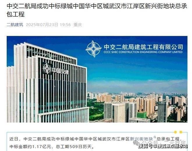 7月23日,二航建筑发布推文,宣布中标绿城中国华中区城武汉市江岸区新兴街地块总承包工程,总工期509日历天。
