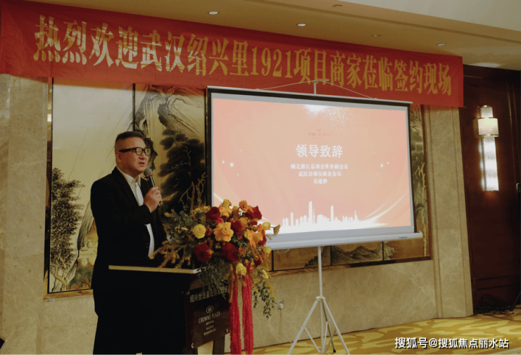 湖北浙商总商会常务副会长、武汉瑞安商会会长吴建妙,代表活动承办方及绍兴里项目商业招商运营合作单位登台致辞。他首先向江汉区政府的鼎力支持、武汉城建集团的匠心耕耘与责任担当,以及各地浙江商会企业家的信任相助致以诚挚谢意,并郑重承诺:将全力搭建鄂浙两地沟通协作的坚实桥梁,以“全周期服务”为核心承诺,为合作企业提供从项目对接、落地建设到运营支持的 “一站式” 精准服务。