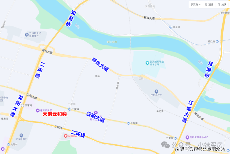 从大区位来看,天创云和奕项目位于汉阳区王家湾核心商圈,具体在十升路和汉阳大道交汇处,属于二环内的核心板块。
