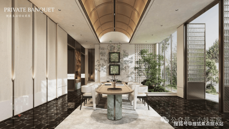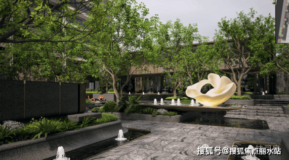 园林与归家动线方面,三重五景园林设计,融入水景、艺术装置,大门隐奢气派。