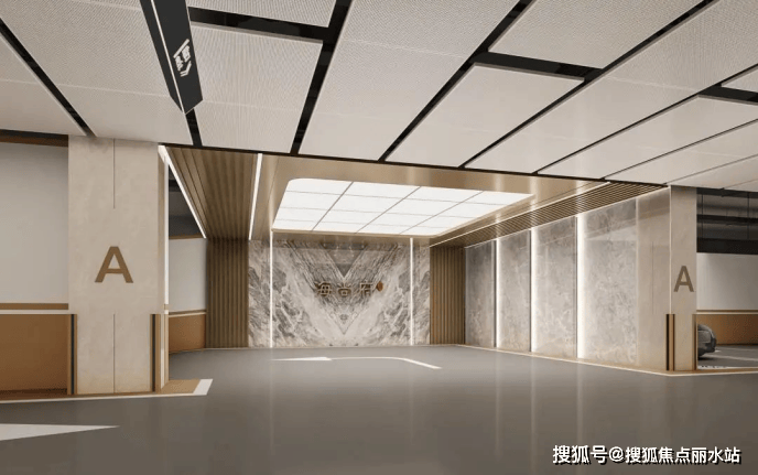 在车库入口,海尚府一改普通车库的压抑,打造“星空吊顶”,斑斓缤纷,如梦如幻,营造出极佳的入库体验;同时,入口两侧墙面和顶面部分区域采用铝板,整体显得整洁大气,让回家充满仪式感。