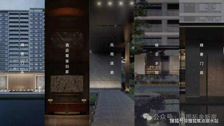 以“阔景门头-酒店尊享归家-风雨连廊-核芯水院-精奢门庭”五大场景,联动“归家-停泊-过廊-观园-入户”五进式归家礼序,各个空间相对独立且互不干扰,清晰流畅的动线,起承转合,层层递进,打造无以复加的尊崇归家体验。