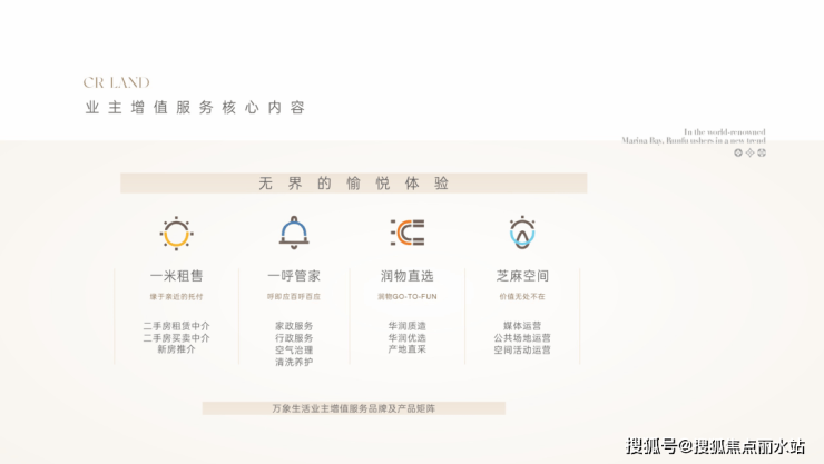 首先,增值服务的核心内容包括:一米租售、一户管家、润物直选和芝麻空间,这些增值服务是为贴心考虑到业主日常生活中随处遇见的场景,进而全面提升居住品质。