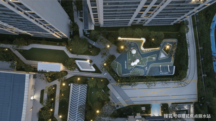 童趣乐园铺装采用新型彩色沥青,环保无污染;内藏处理的灯带色温宜和,无忧灼伤。0-3岁儿童游玩的攀爬坡、摇摇乐、学步广场,4-6岁儿童游玩的互动装置墙、秋千、涂鸦板,6-12岁儿童游玩的滑滑梯、下沉剧场、眺望平台等配套一应俱全,给每一份童心以盛放的场域。