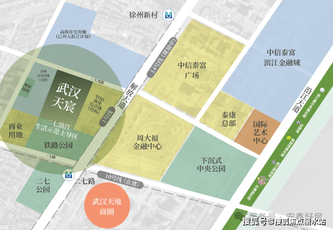 项目位于江岸区二七滨江板块,距离二环线直线距离600多米,当之无愧的汉口核心区位。