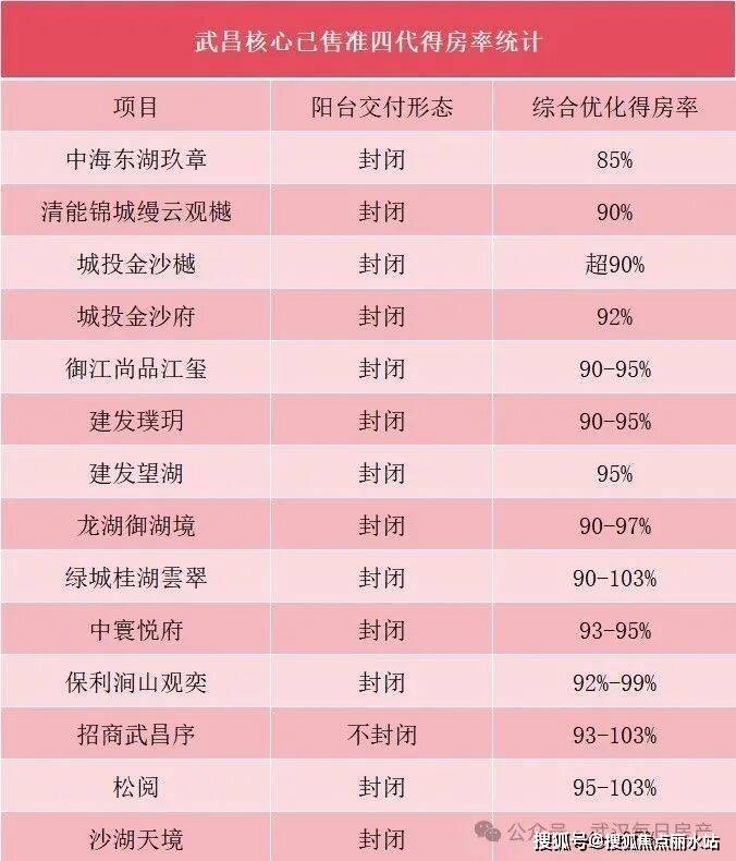 统计了一下武昌核心15个准四代住宅,目前得房率最高值大概在97%-105%。