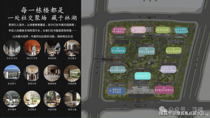 N个社区主题:所有楼栋首层全架空,打造了全龄主题泛会所,如儿童活动空间、青少年运动空间、中年社交空间及老年娱乐空间。