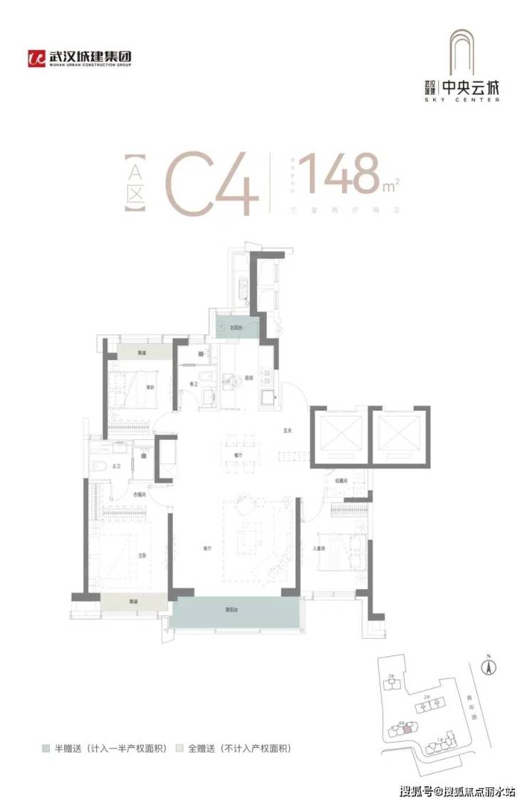 武汉城建·中央云城 平层户型·建面/148㎡