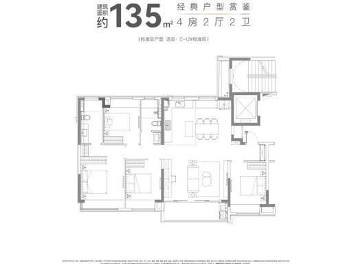 (四)建面约 135㎡四房两厅两卫:顶奢改善,宽境人生格局