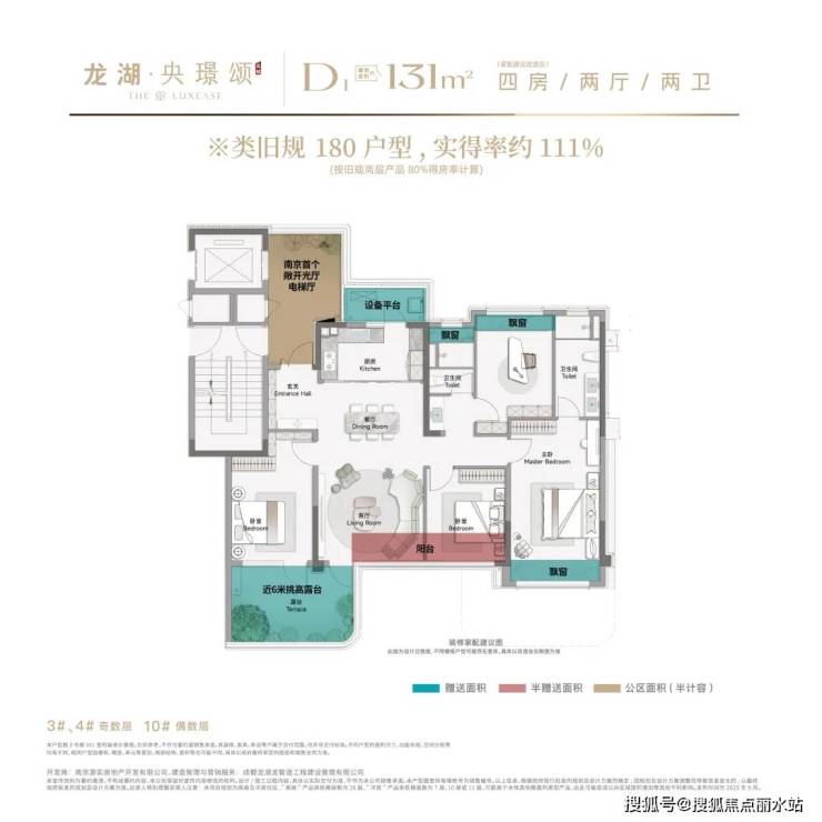 龙湖北城央璟颂打造建面约125㎡高层、约143㎡洋房,实得率最高做到113%。以建面约143㎡洋房为例:
