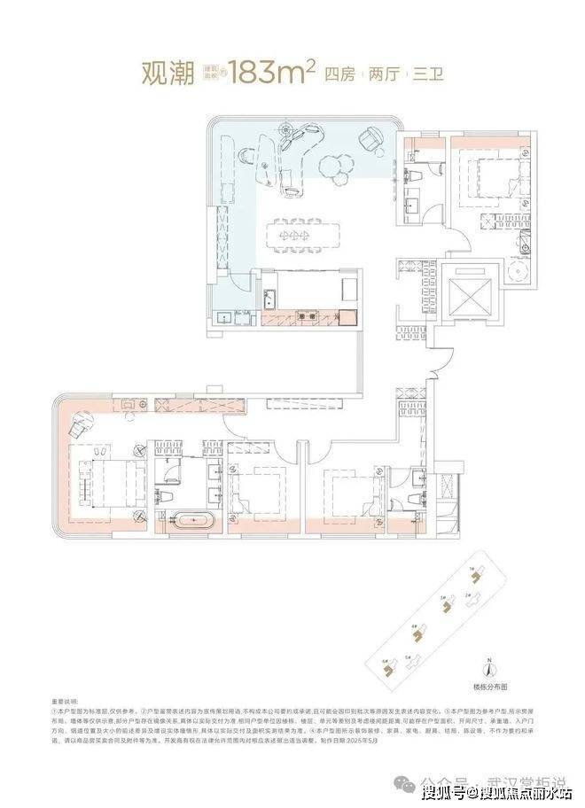 全盘只有建面约143㎡和183㎡两个户型,通过空间扩展+20%灵动阳台,带来超高得房率,保证改善圈层的纯粹。