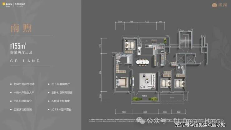 155平,小高17层,一梯一户,四室两厅三卫,层高3.1米,得房率约108%。