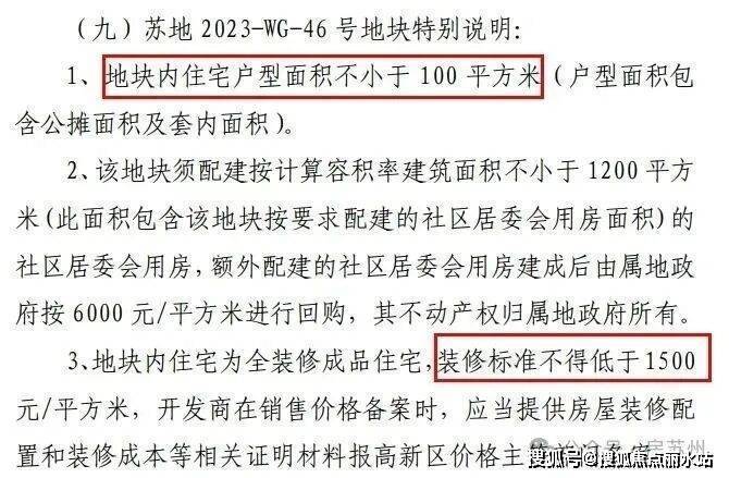根据拍地要求,地块内住宅户型面积不小于100平方米,装标不低于1500元/㎡。