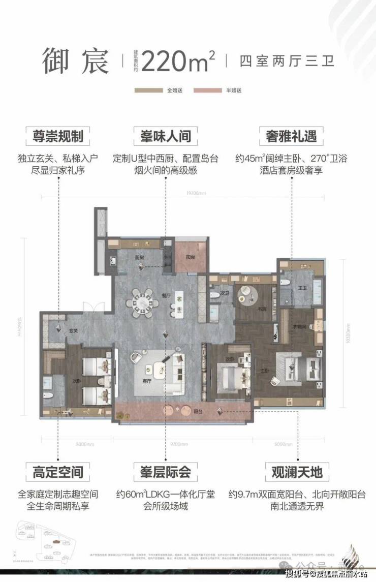 私享电梯厅,PRADA绿奢石定制家族铭牌,全功能场域,约97%得房率,约60㎡无界阔厅,主卧约45㎡豪华酒店式总统套房