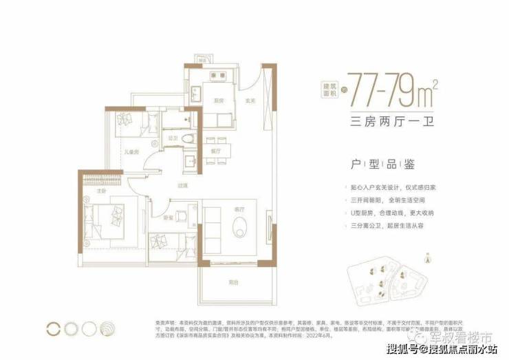 💎户型鉴赏💎🏠建面约77~79㎡三房一卫