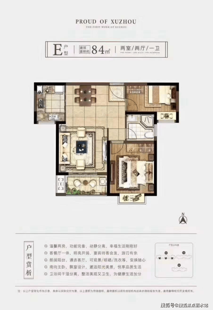 建筑面积约84㎡ 两室两厅一卫
