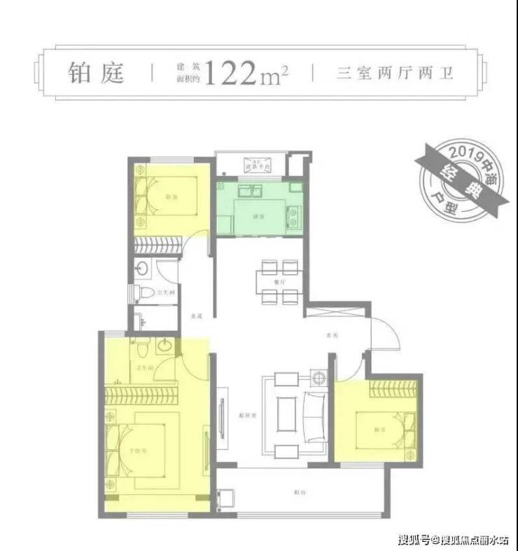 ▼建筑面积约122㎡三室两厅一卫户型