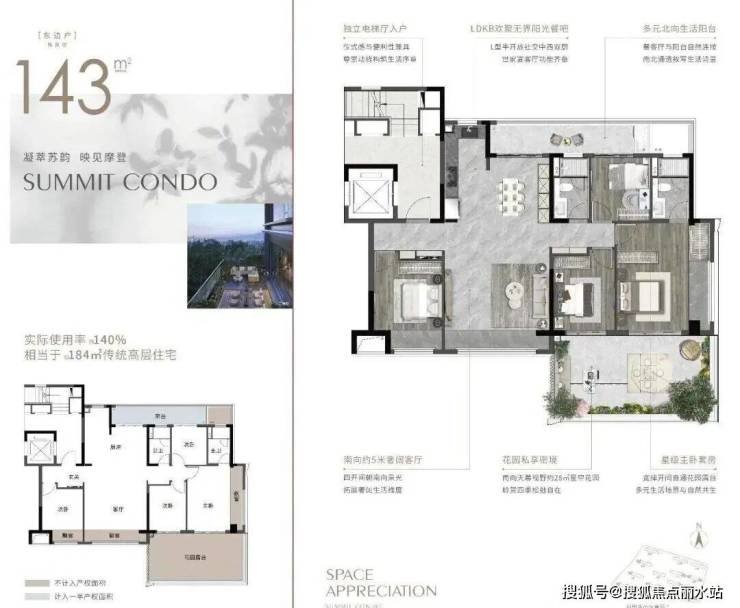 🥇建面约143㎡:欢聚无界约29㎡花园露台实际使用面积相当于传统住宅185㎡传统高层住宅