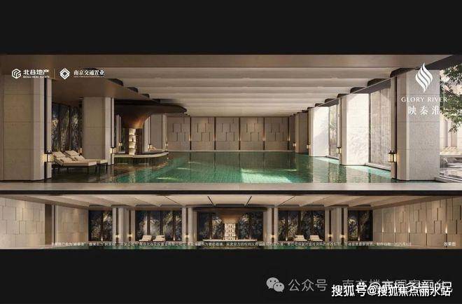 奢感泳池度假|南京首创恒温泳池水吧,利用高差在泳池边设计下沉式水吧设计,带来更浓郁的奢华酒店度假感。
