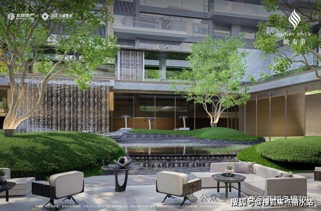 以叠山理水手法打造下沉式自然庭院,营造立体山水,设计对景瀑布,强调引人入胜的洄游式体验,游赏其中,尽赏全身心融于自然的高级松弛感。