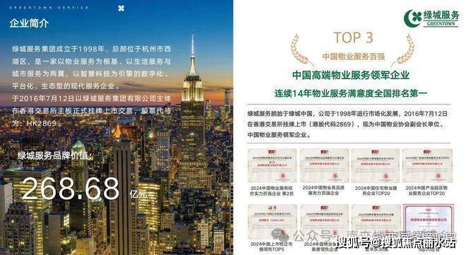 截至目前,绿城服务已经覆盖全国23个省、99个城市,服务面积超过2亿平方米,是行业内服务面积最大的企业之一,2024年评测结果显示,绿城服务以93.86的优异成绩荣获物业服务客户满意度第一名,凭借强劲的财务表现、显著的市场地位和品牌价值,品牌持续展现着在物业服务行业的强大实力和领先地位。