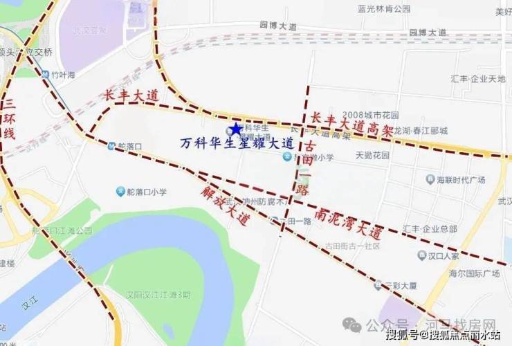万科华生·星耀大道位于长丰大道以南,长丰大道与丰帆路交汇处,在楼市划分中属于古田板块,行政划分属于硚口区,属于三环内。