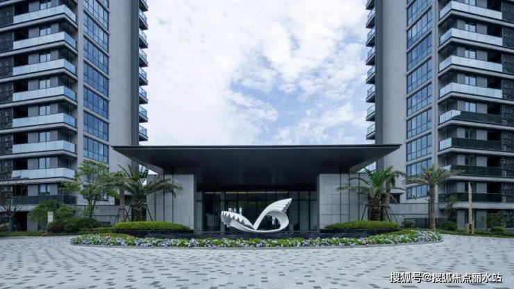 入口处叠水水景中的主题雕塑,运用 贝壳 元素呼应滨海沙滩;棕榈科植物与热带乔灌的搭配增加了 滨海度假风情感 ,吸引旅居人群停留驻足。
