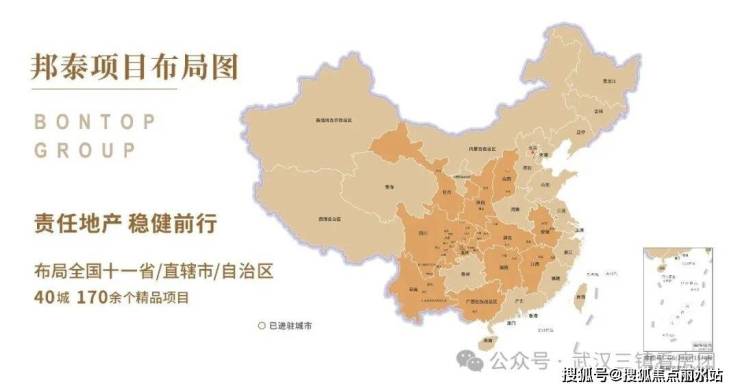 邦泰集团历经18年稳健发展,进驻全国40座城市,累计开发和运营170余个精品项目。以“责任地产”为品牌定位,从区域性深耕走向全国化,已布局成都、武汉、重庆、昆明、合肥、南宁、长沙、西安、南昌等城市及其周边核心城市群。