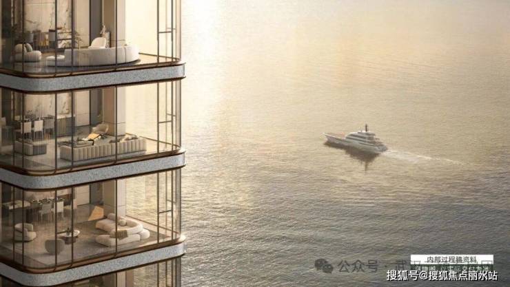 【艺术奢宅】超感全景舱立面,超大尺度的环绕屏玻璃,打破室内外边界。游艇式环幕观景视野,将壮阔长江盛景,尽汇于眼眸。