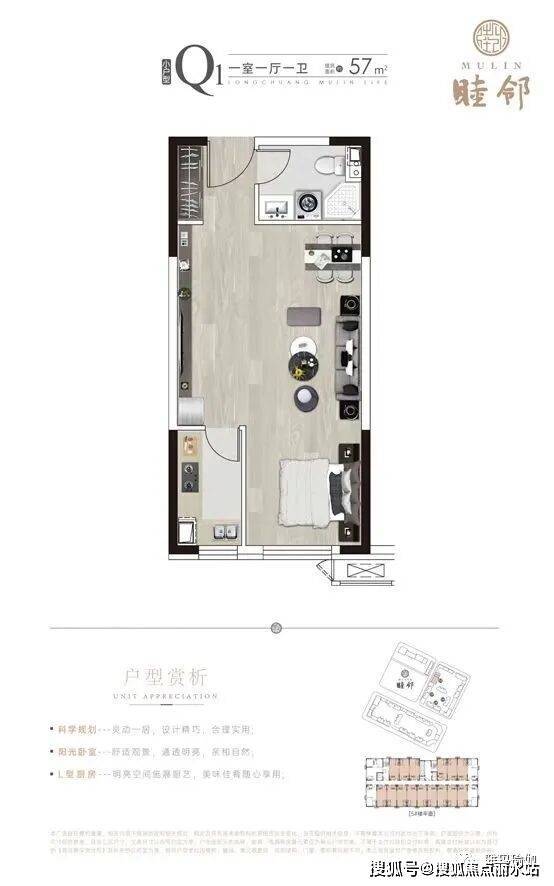 小户型 Q1 一室一厅一卫 建面约52-57㎡