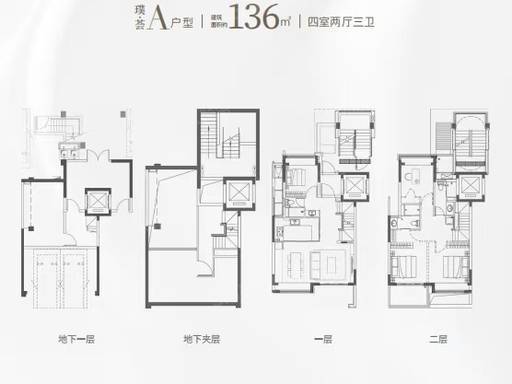 叠加别墅:建面约 122-136㎡四房两厅三卫,上下分层设计,动静分区;一层带阔景阳台与老人房,方便长辈居住;二层多卧室布局,满足多孩家庭需求;毛坯交付,可自由定制装修风格,彰显个性化生活品味。