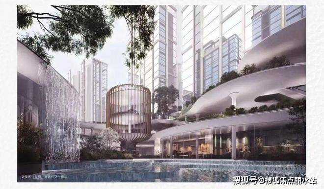 项目内部整体采用首层抬高的设计,打造了多层级豪华水系景观,全区风雨连廊连接。
