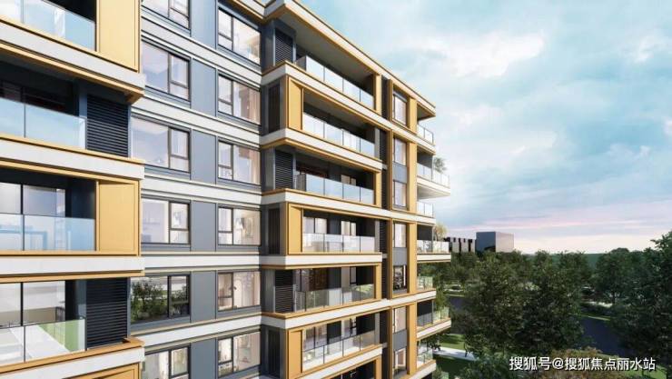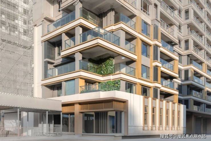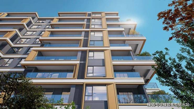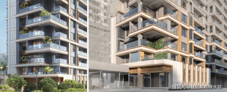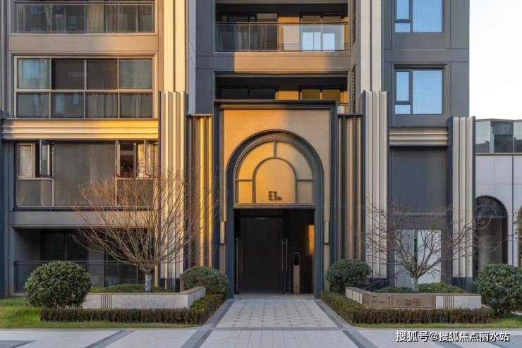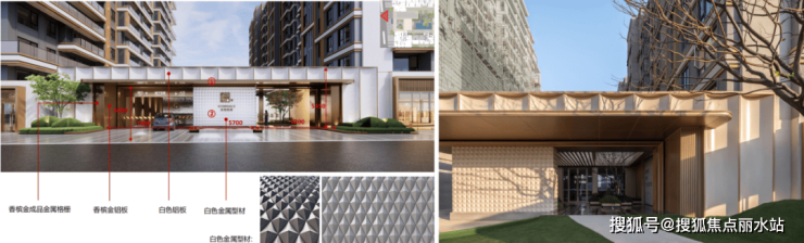 立面设计上,建筑风格采用经典名仕系列,经典元素演绎现代化时尚。米白色色的冷硬质感与香槟色金属的温暖光泽相结合,不仅创造了一种独特的视觉对比,还赋予建筑一种精致挺拔的外观。立面采用涂料+部分金属型材和铝板+eps,控制成品的同时保证品质精细化。