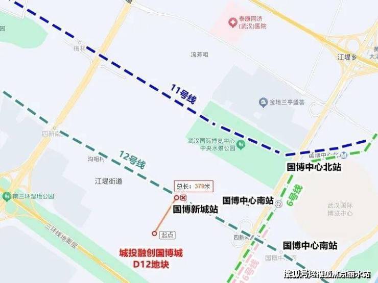周边公交站点均在南向公交鄂渚路四新南路公交站(约380米)、鄂渚路文举街公交车站(约862米)。项目周边覆盖有6、16号线以及在建的11号线、12号线,其中在售的十二期D12地块距离12号线国博新城站(原博览路站)不到400米。