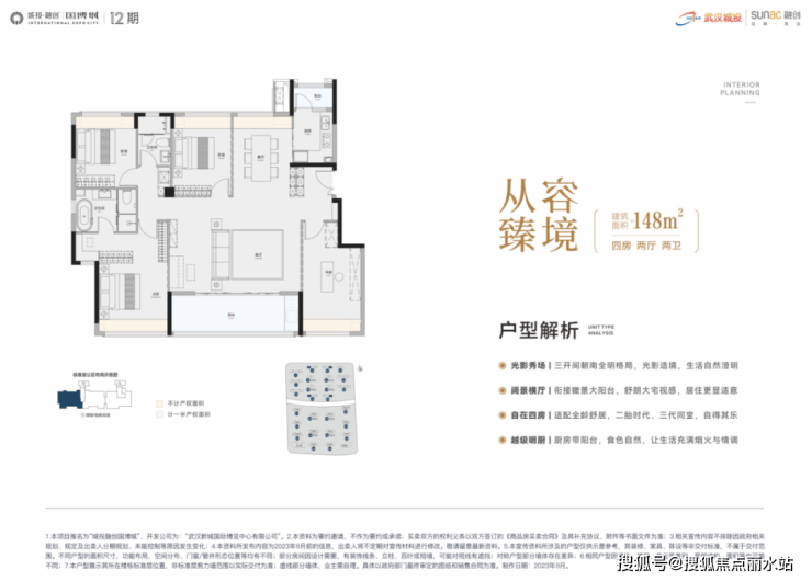 城投融创国博城十二期即D12地块用地面积约10万方,总建面约29.7万方,住宅计容建面约20万方,包含14栋11层的洋房和12栋高层,其中首推的北区组团均为11层的纯洋房,包含1-16号楼。