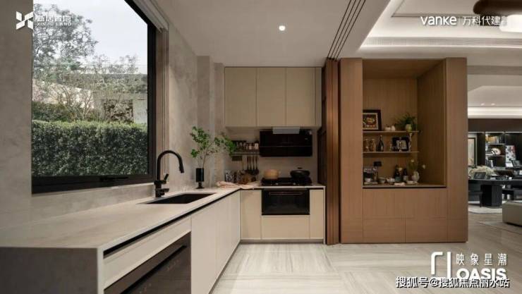 全屋预留及交付收纳空间,总容量达到26m³,相当于可以收入500个20寸的行李箱。从入口玄关约1900毫米进深,轻松收纳行李箱、婴儿车等大件物品的“逗号空间”;到给厨具定制专属收纳位的厨房,以及主卧预留的L型衣帽间、床尾柜、门口嵌入式深柜空间——