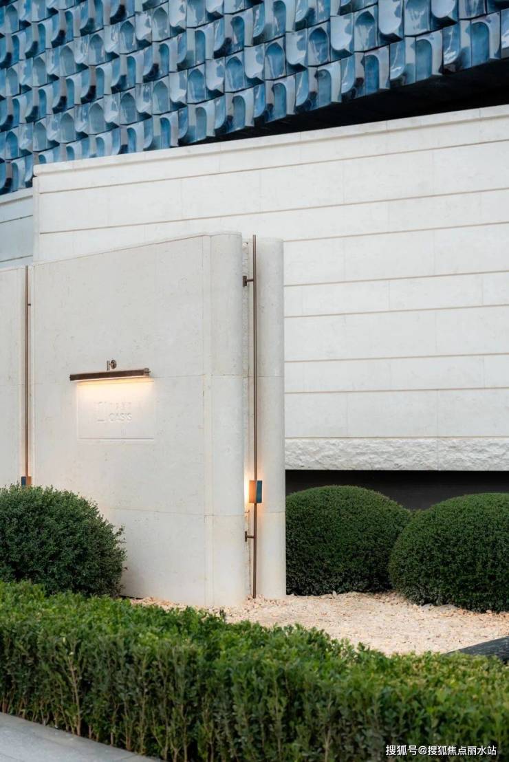 沿街立面由千余块手工定制陶砖组成,建筑基座则由贝金米黄石材砌成,稳重的石材搭配琉璃的流光溢彩、极简的造型中透露出手工的温度。