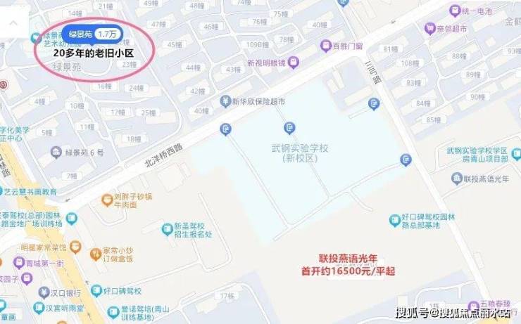 都是紧邻武钢实验学校,都在青山第一梯队的中小学附近,联投燕语光年全新楼盘均价仅约15500元/平,居住品质与绿景苑等二手房相比,完全是天壤之别。