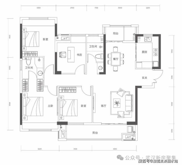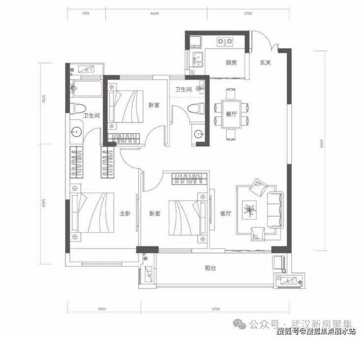 C2户型——118㎡三室两厅两卫方正格局:户户通透,三开间朝南,餐客一体:拓展室内公共空间瞰景宽境:南向约6.7M阳台