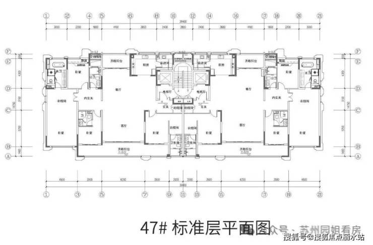 先来看洋房,47栋标准层平面图如下,一梯一户。