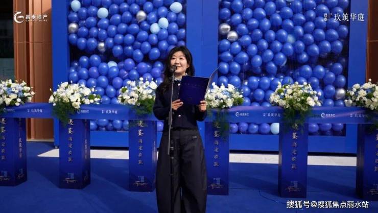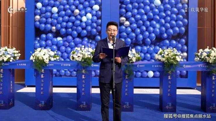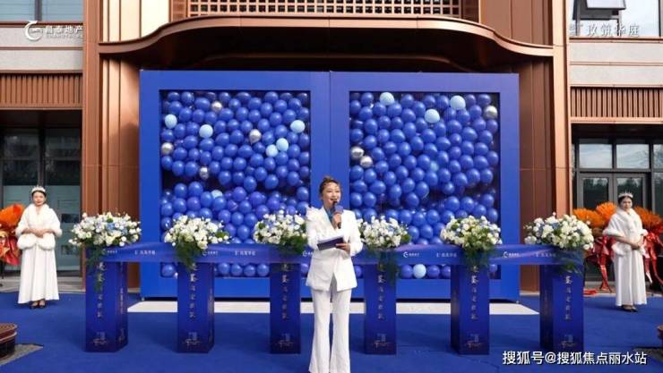 活动最激动人心的环节,当属森境会客厅的剪彩启幕。主持人邀请各位领导、嘉宾移步主舞台剪彩区,随着全场整齐的倒数声,“蓝境气球墙” 缓缓向两侧展开,数百只定制蓝气球迎着阳光腾空而起 —— 这不仅是震撼的视觉画面,更是昌泰・玖筑华庭对 “幸福高定生活” 的承诺,正式向所有来宾兑现。