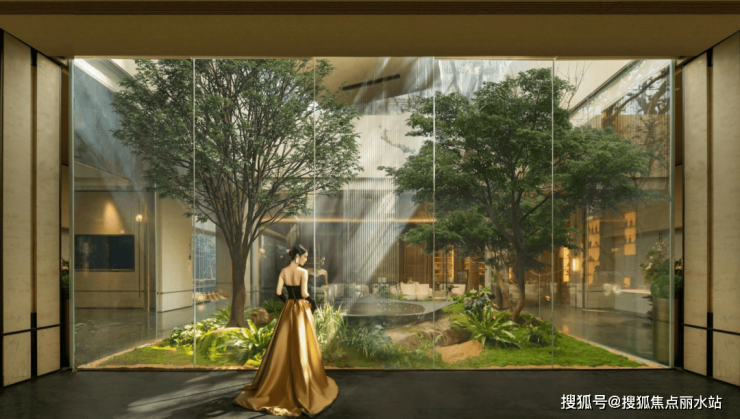 飞泉叠瀑、水岸花径、艺术廊厅、观景眺台等以人为本的三重下沉庭院,与高定会所、架空层相呼应。